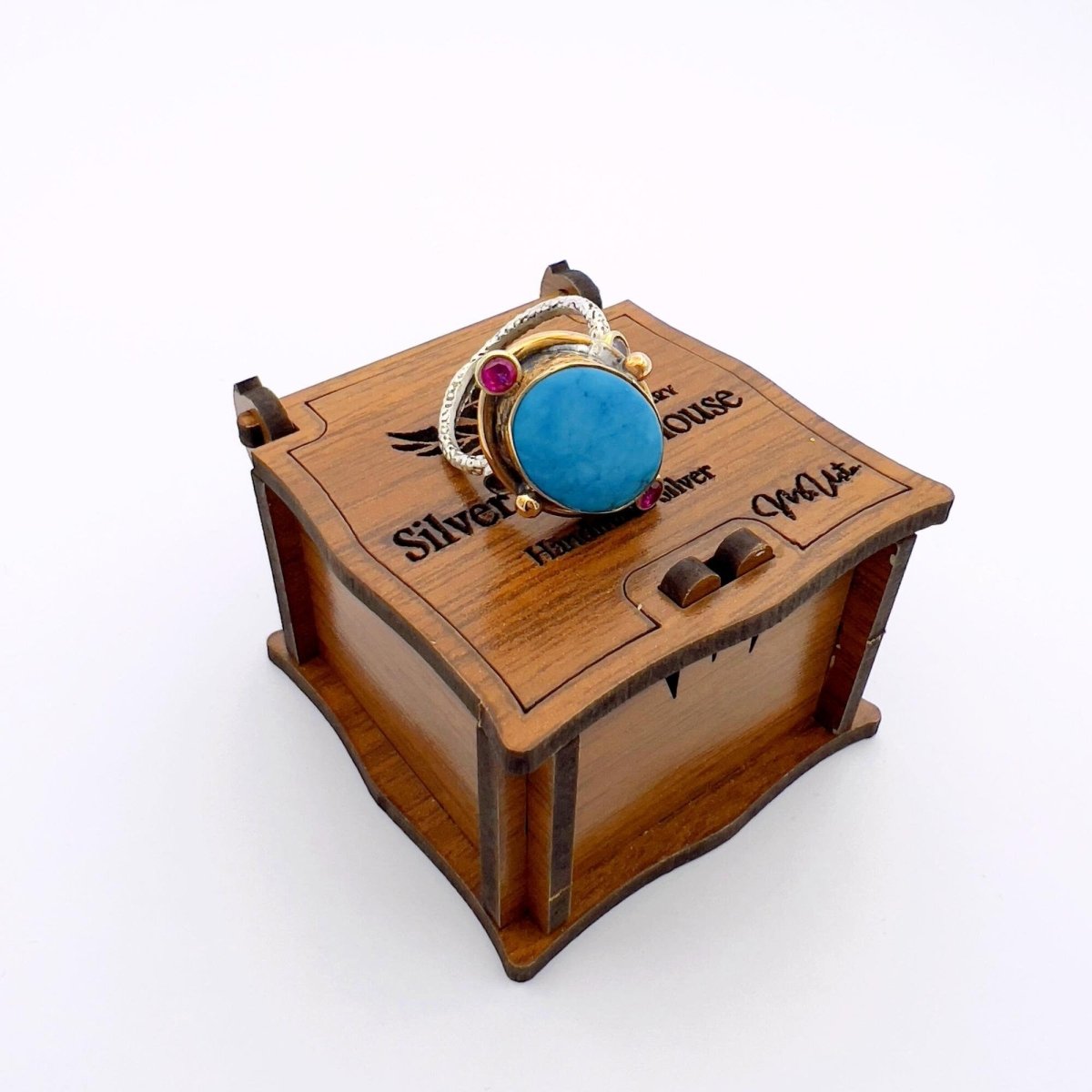 女性用ターコイズストーンリング - 手作りオスマンスタイルジュエリー