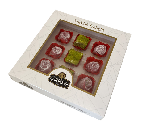 Carsibasi プレミアムアソートトルコ風味菓子(ローズ&ベルベットロール) - 350g ギフトボックス