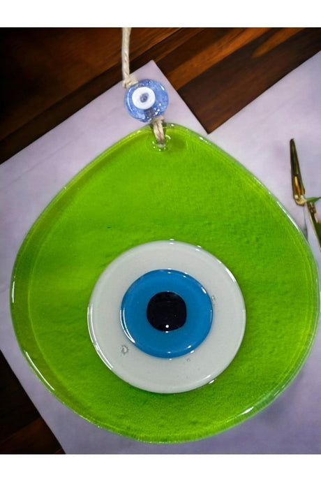 青いナザールビーズのライトグリーンカラーのナザールビーズドロップパターン手作り壁飾り