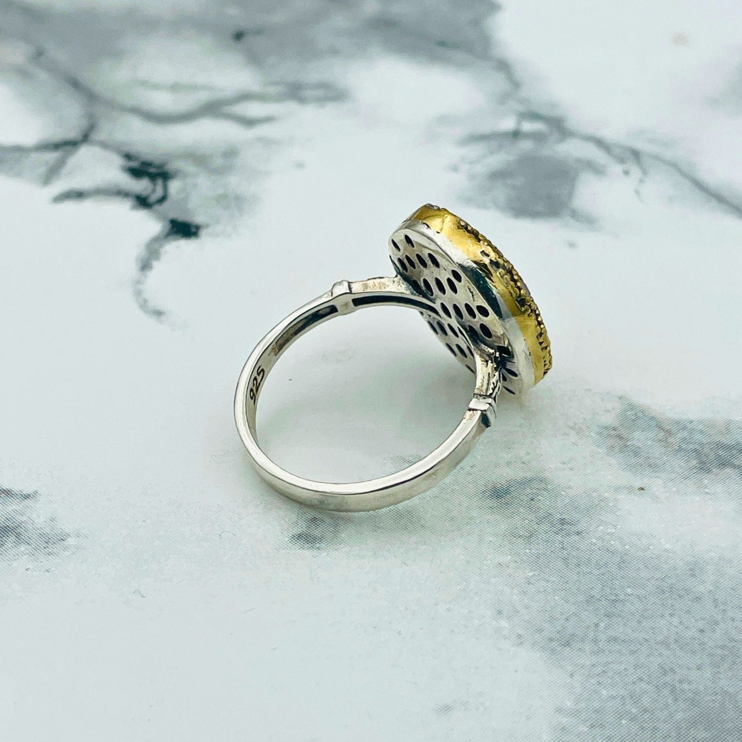 オスマン帝国の豪華な世界に足を踏み入れ、私たちの exquisite Turkish Handmade Amethyst Women's Ring をご覧ください。この手作りのリングは、鮮やかなアメジストの石が小さなラウンドストーンの間に丁寧にセットされた美しいオーバルデザインを特徴としており、複雑で本格的なオスマン風の作品を作り出しています。