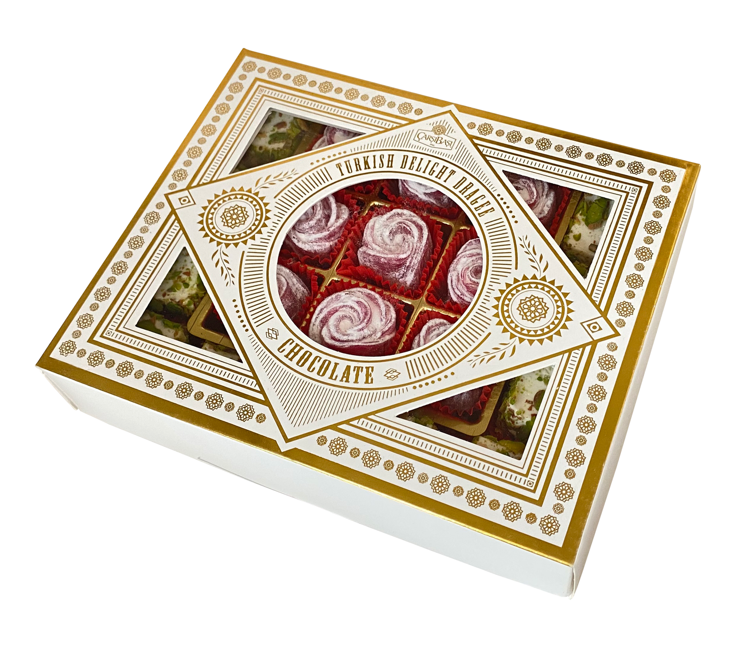 Carsibasi プレミアムアソートトルコ風味菓子(スライスピスタチオ&ローズ) - 500g ラグジュアリーボックス