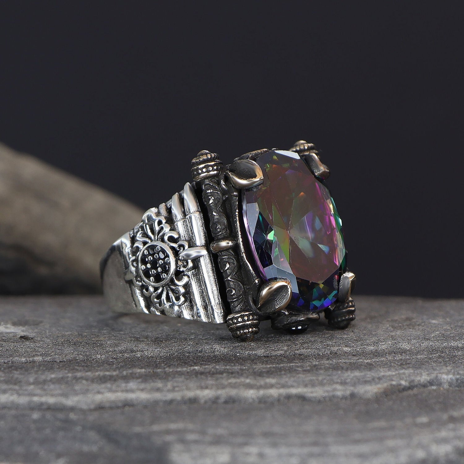 Elevate your style with the Men's Silver Ring featuring Mystic Topaz Stone. Embrace elegance and express your distinct taste with a piece that radiates sophistication and artistry.